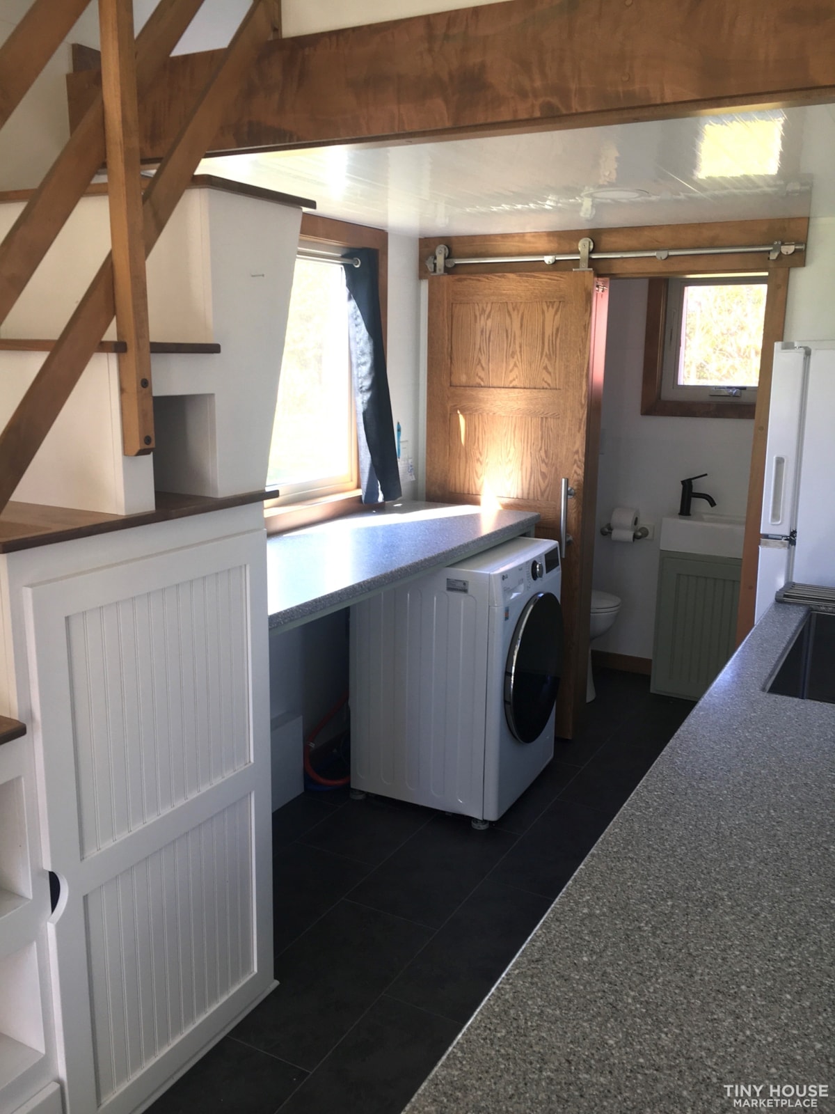 “Buttercup” Professionally built by Modern Living Tiny Home in 2023 Kokosing model RVIA certified 24ft X 8.5ft X 13.5ft 192 square feet/260 square feet with loft 14,000lbs Trailer Made custom tiny home trailer (18k lb. GVWR) One owner/pet free Galvanized belly pan Leveling jacks on all four corners. Brakes on every wheel. Sealed wiring harness and all LED lighting. 50 Amp 240V Closed-Cell spray foam insulation (3” floor, walls & ceiling) Lumber framing (2’x4’) Standing seam metal roof with custom gutters Gable roof with dormer loft/charcoal Exterior siding: LP SmartSide panel (vertical)/Barely Yellow 32” full glass fiberglass door with sliding shade Exterior storage box Electric tankless water heater LP Ductless mini split unit 12k BTU 8 double-pane, tempered-glass windows Interior siding: white PVC interlocking liner paneling with wood trim Luxury vinyl plank flooring/Staccato Stone Recessed LED lighting throughout Sleeping loft Custom built: • Built-in bench seating (seats 6) • Bench converts to full size bed • Bookshelves (2 sets)/white • Staircase with storage & closet • Handrail, loft division wall and loft shelving Bathroom 24” oak barn door Flush toilet (No tank. Needs septic/sewer hookup) Vanity/clary sage Open shelving above toilet Fiberglass shower (32” x 32”) Exhaust fan (bathroom) Kitchen 31” undermount kitchen sink Corian countertops Upper and lower cabinets/clary sage LG 2.4 cu ft high efficiency smart front load washer and electric dryer combo Whirlpool 11.6 cu ft top freezer countertop depth refrigerator Sturdy exterior steps built from repurposed and new material. Disassemble for transport No owner financing Buyer responsible for transport Located in Lancaster, Kentucky (35 miles south of Lexington) Serious inquires only1 beds – 1 baths