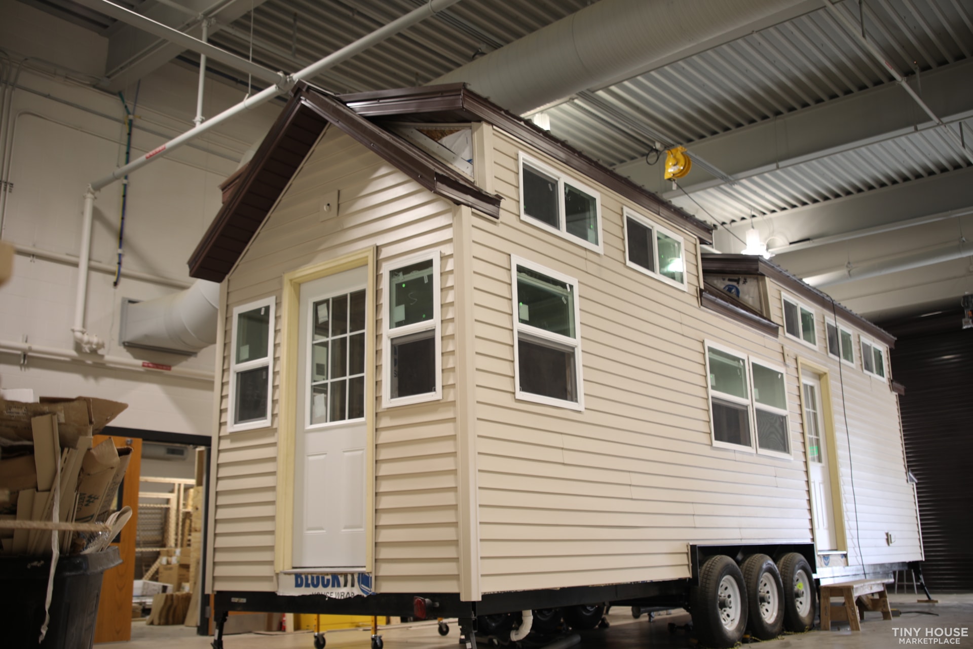 + Free ShippingThe home is constructed on a 32’ triple-axle trailer manufactured by Lippert Components. Framing is 2×4 construction with vinyl siding on the exterior. The home includes 2 bedrooms (lofts) and a full kitchen, with appliances included. There is a laundry area along with 1 bathroom that includes a full shower. There is also a mini-split HVAC system in the home. The home was built by our 3rd year Building Trades Classes along with the instructor who has several years experience in home building and remodeling. We have also partnered with our local Builders Association as well as another local company who specializes in high end park model homes. This has provided another level of quality control especially in the areas of electrical and plumbing. We are looking to sell so that we can continue to build these in the future. 100% of the proceeds will go directly back into our Building Trades program at our high school so that we can continue to provide incredible experiences to the almost 300 kids who go through our program each year. The interior pictures show that the students are still working through this but I am also including a rendering and floor plan from our Builders Association as they are going to display it in the Parade of Homes.