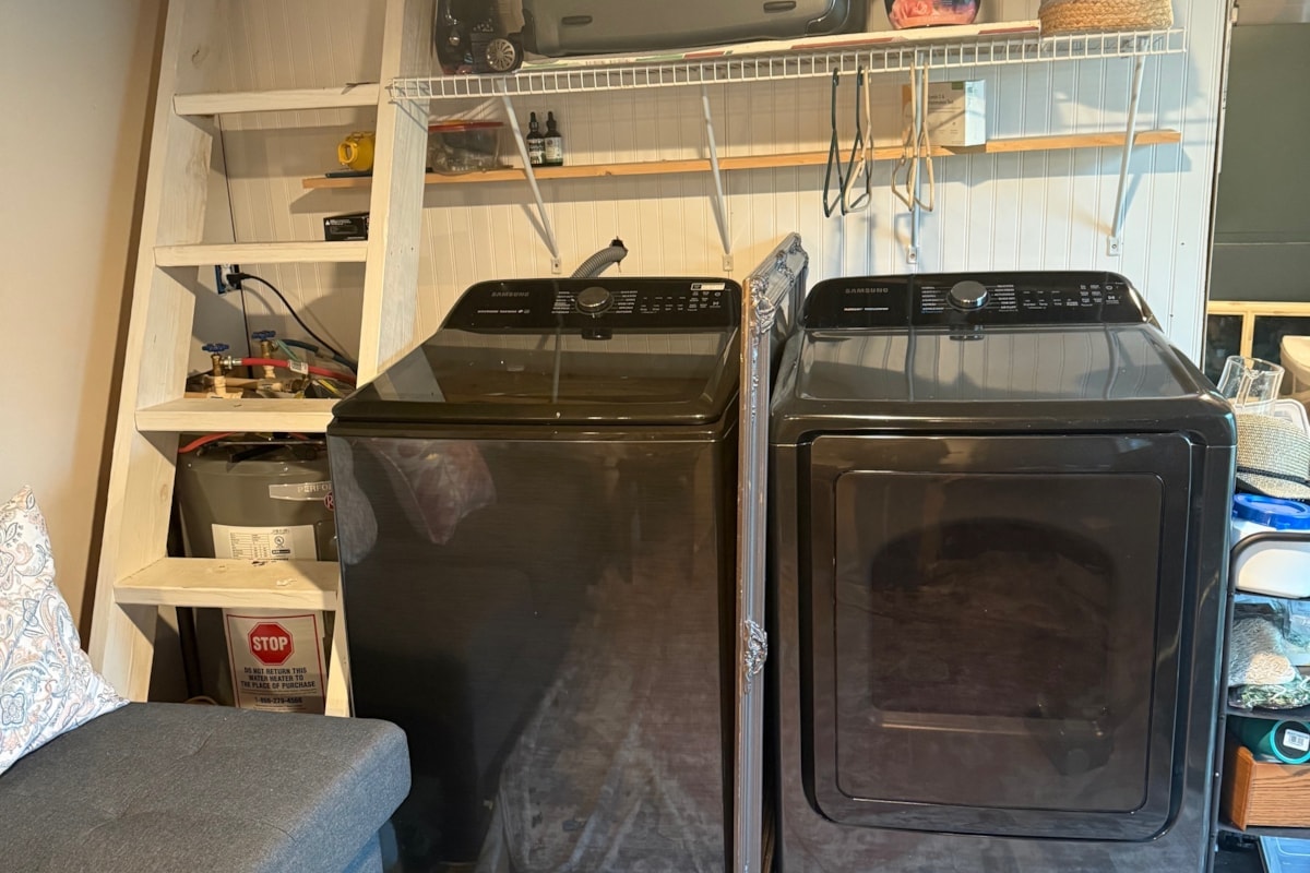 Renovated 12×36 side lofted barn. Patio door. Comes with LG fridge, Samsung washer and dryer, LG 42 inch tv. Fireplace heater, window ac, sofa, small kitchen appliances $18,000 Sold as is Dual flush valve needs replacing.