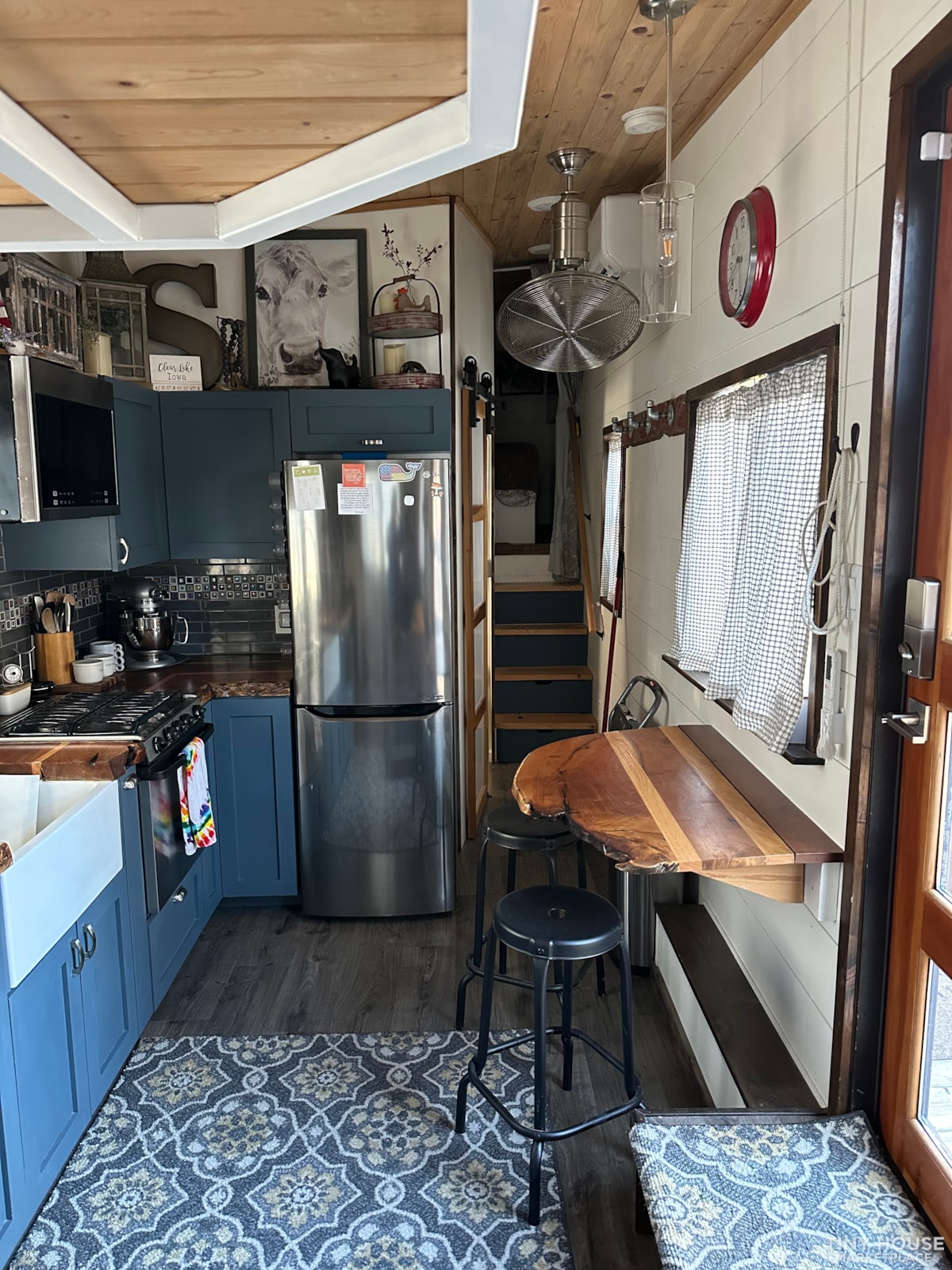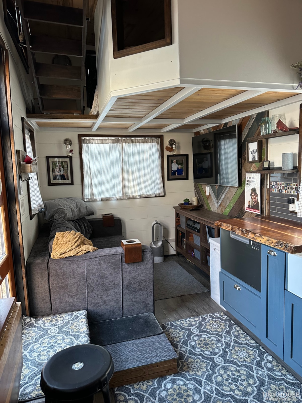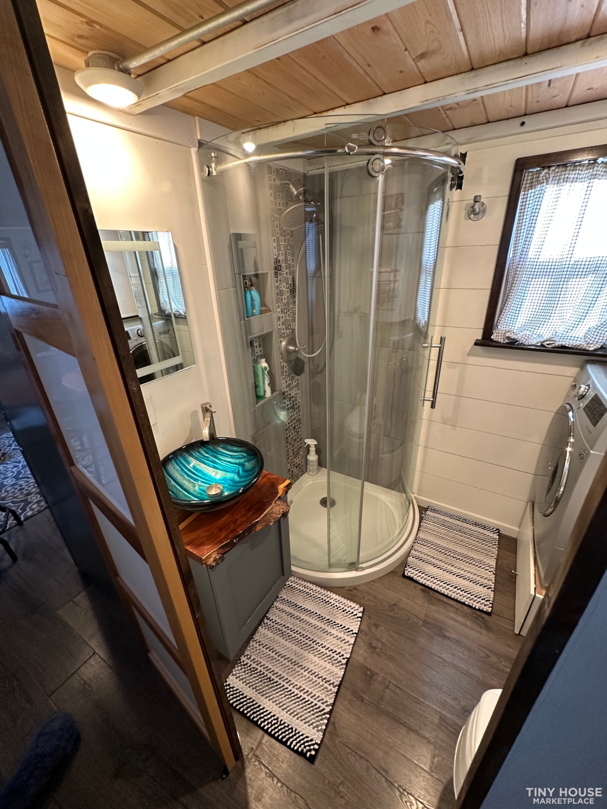 Beautiful 325 sq foot tiny home on trailer. Built I 2019 with some upgrades since! Goose neck with main bedroom in the gooseneck featuring king size bed with storage under, nice closet and second loft with queen mattress to could be used for storage. Includes washer/dryer combo and Separate composting toilet, is hooked up to sewer as of right now, but can be moved to off grid living.