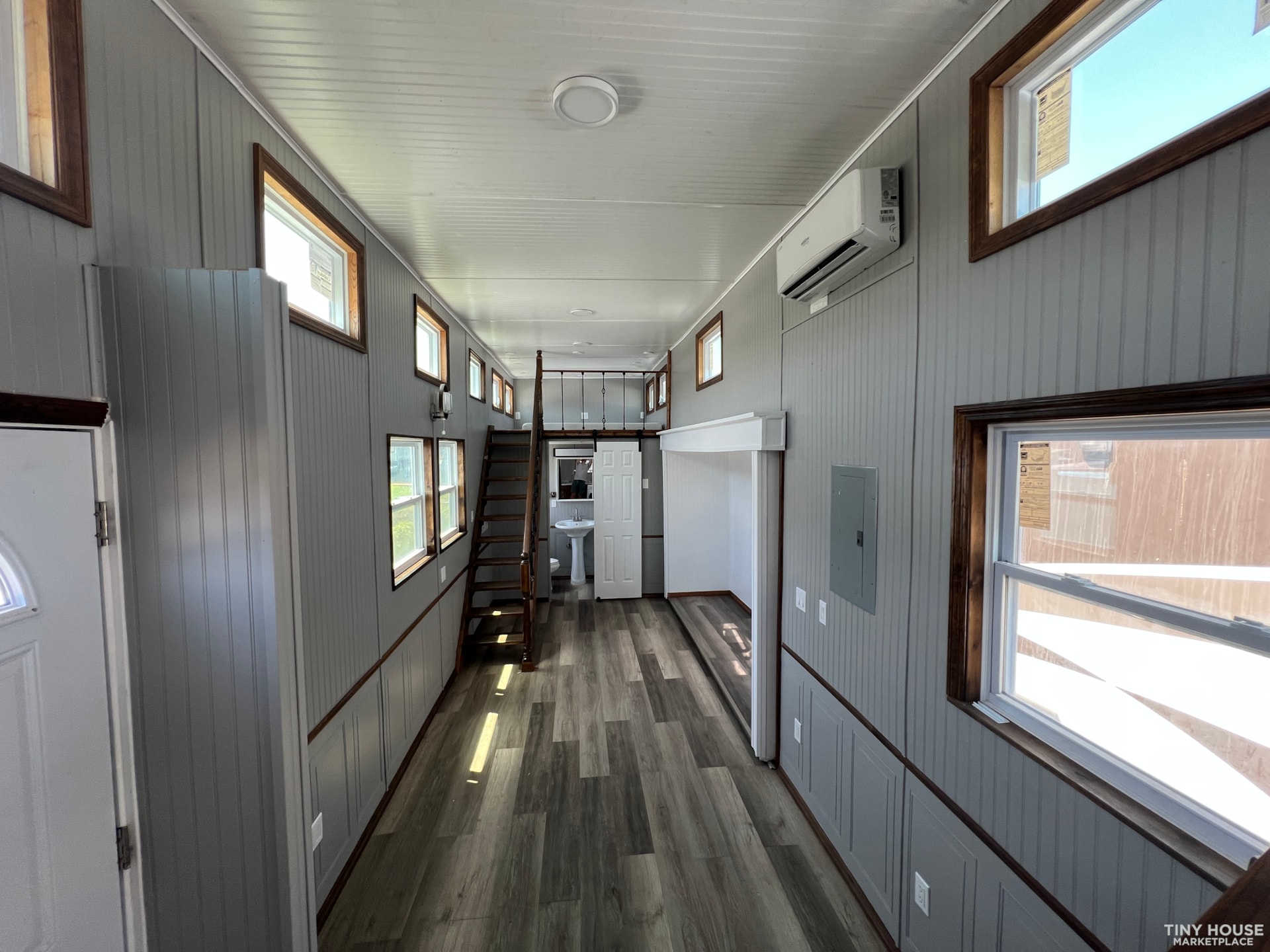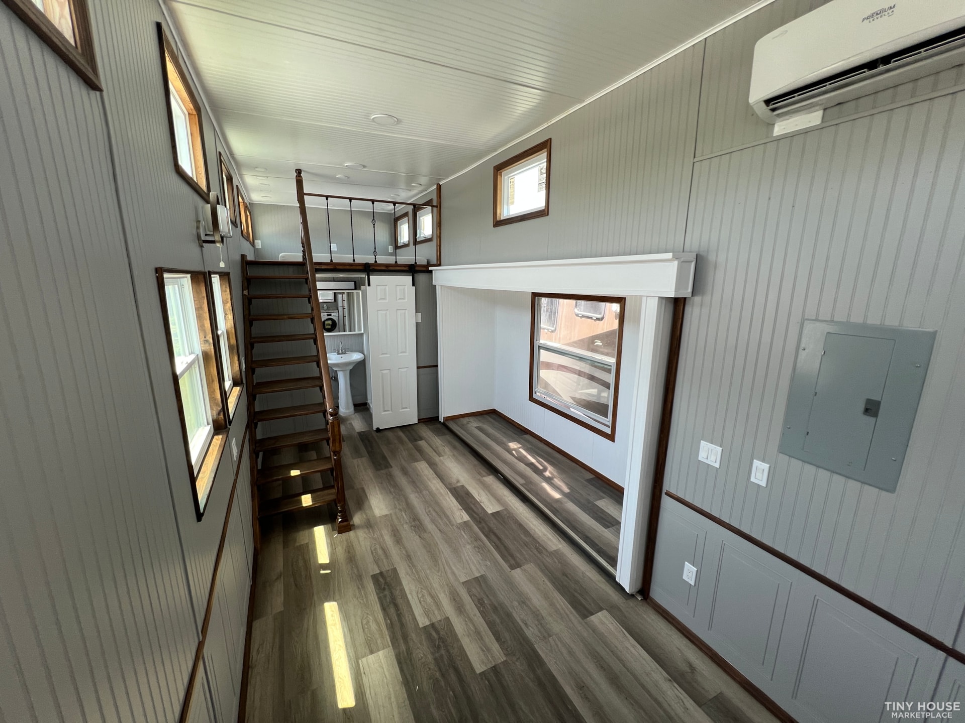 + Free ShippingA beautiful handcrafted tiny house that was built with a lot of love and high-quality materials. It has two lofts—one fits a king-size mattress and the other fits a queen. There’s a nice open living space with a slide-out that gives you extra room for a couch, dining table, or whatever setup you want. All the windows are double glass and hurricane-resistant, and they come with bug nets too. The walls are perfectly insulated with spray foam, and everything inside is done right. It has a full shower cabin, LED lights with dimmers, air conditioning, and the whole electrical system was done by a certified electrician. It comes with a brand new washer/dryer combo, fridge, and sink. The layout can comfortably fit six people, and it’s built on a trailer and ready to go.