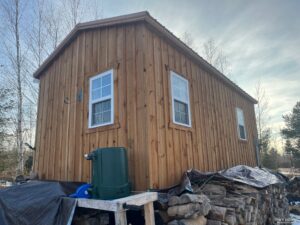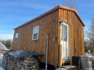 Built in 2023 this tiny home is 10×20, 200 sqft, fully insulted. New stove included from Tinywoodstove.com The Dwarf 4kw Small Wood Stove. Room for a potential bathroom or closet/storage area. Small fridge, sink cabinet, and 5 drawer cabinet for kitchen storage! Loft built for queen bed, and currently used as a closet underneath. Loft for storage also inside! Electric (200amp panel currently using 100amp set up inside, with GFCI outlet) with 1 overhead light! 5 windows. Custom trailer, take it where you need! Some small details needed, but ready for you to live in or rent as an Airbnb!