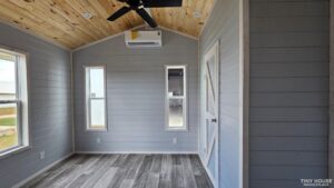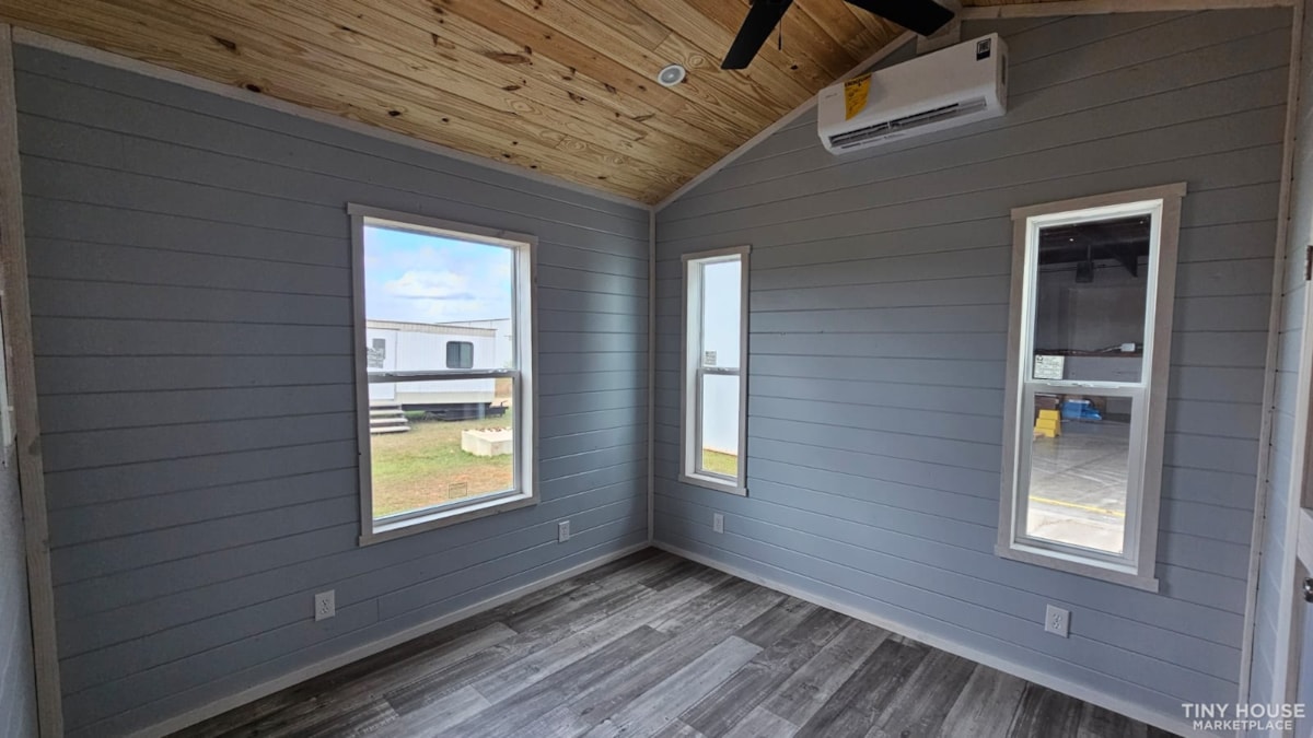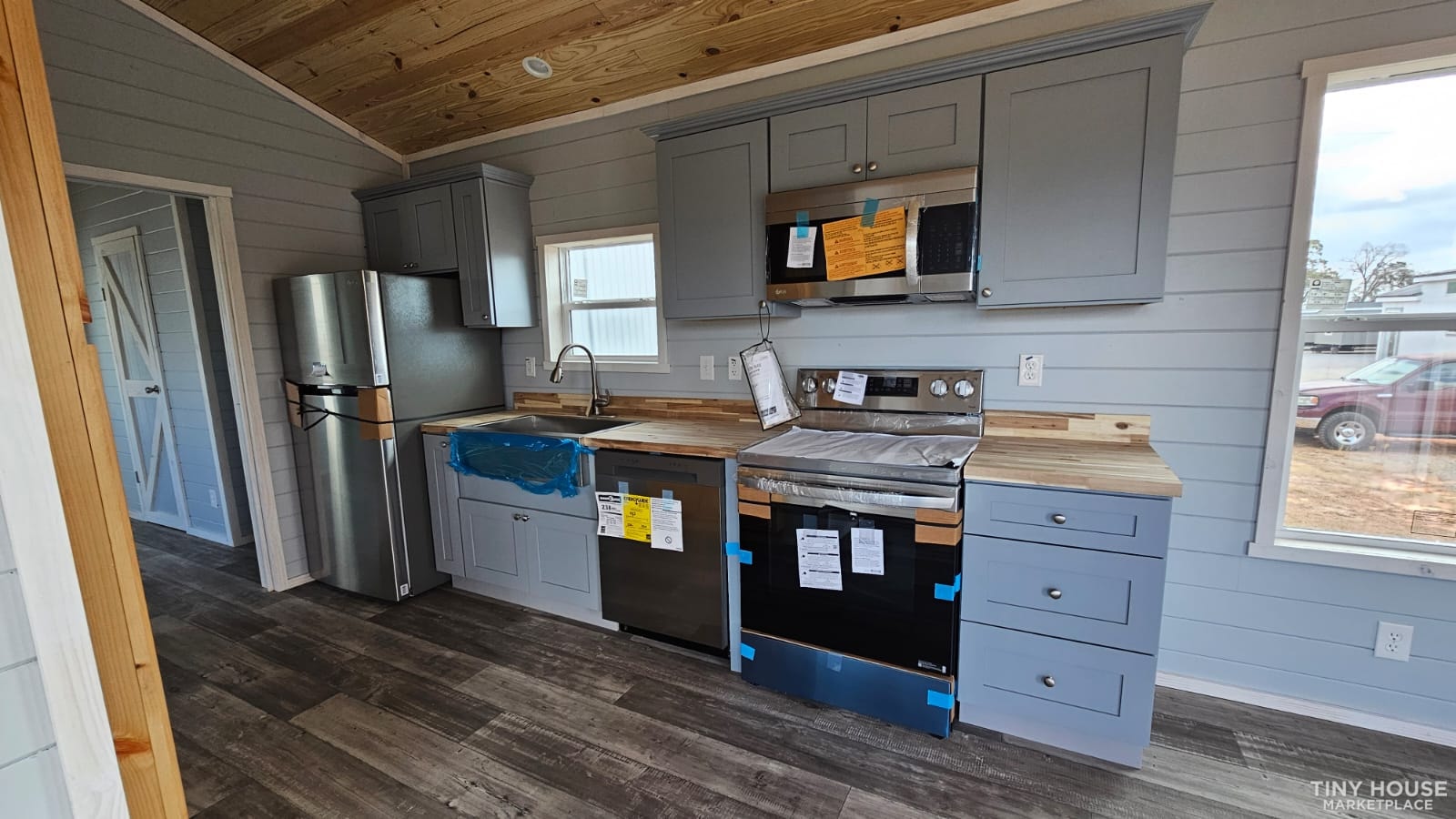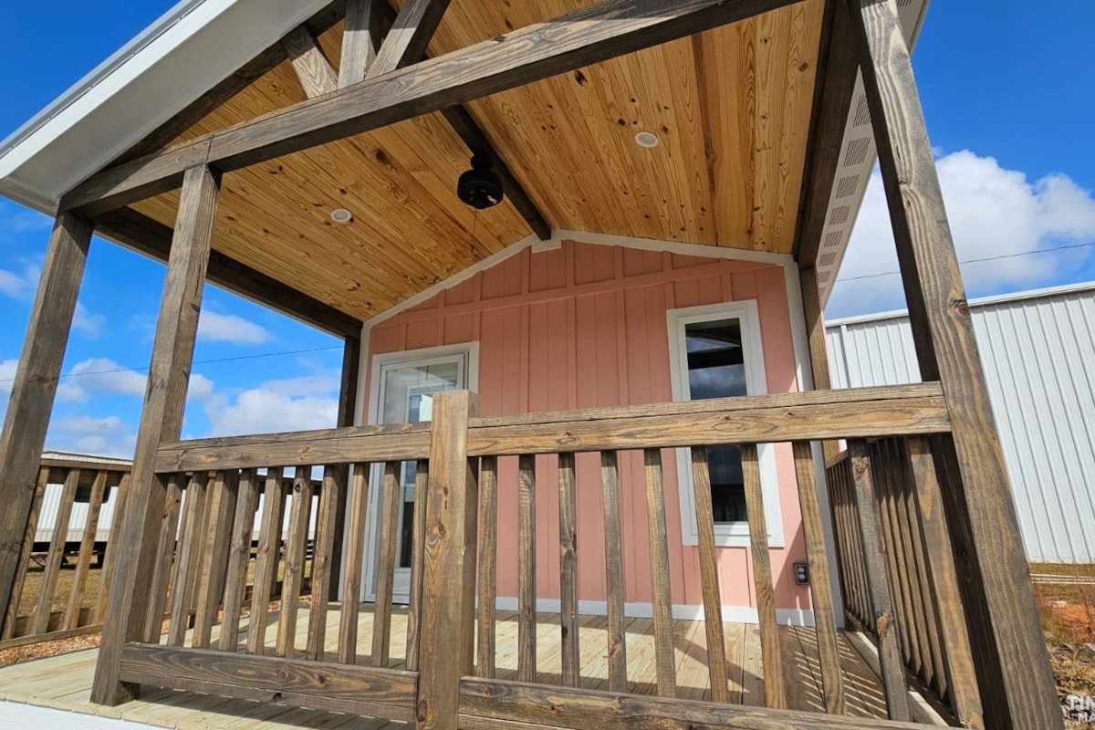 Looking to make your RV dreams come true? Check out our beautifully crafted Treadaway 2.0, designed to meet ANSI 119.5 RV code, perfect for your next adventure or as a cozy getaway! Features: Charming Exterior: Finished in Mellow Coral with a durable LP Board and Batton. Modern Kitchen: Equipped with stainless steel appliances for all your cooking needs. Cozy Living Space: Enjoy the warmth of the electric fireplace. Spacious Layout: Huge bedroom with an ample closet space. Inviting Interior: All tongue and groove wood walls painted in a soothing grey. High Ceilings: Cathedral ceilings that add an airy feel. Stylish Storage: Two-tone cabinets that elevate the aesthetics. Act fast to make it yours before Christmas!